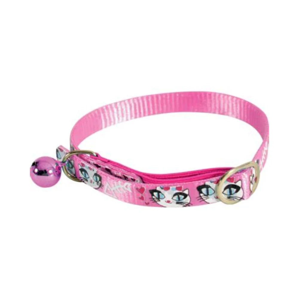 زولكس اطواق عنق باللون الزهري مع رسومات قططية مصنوعة من النايلون مع جرس