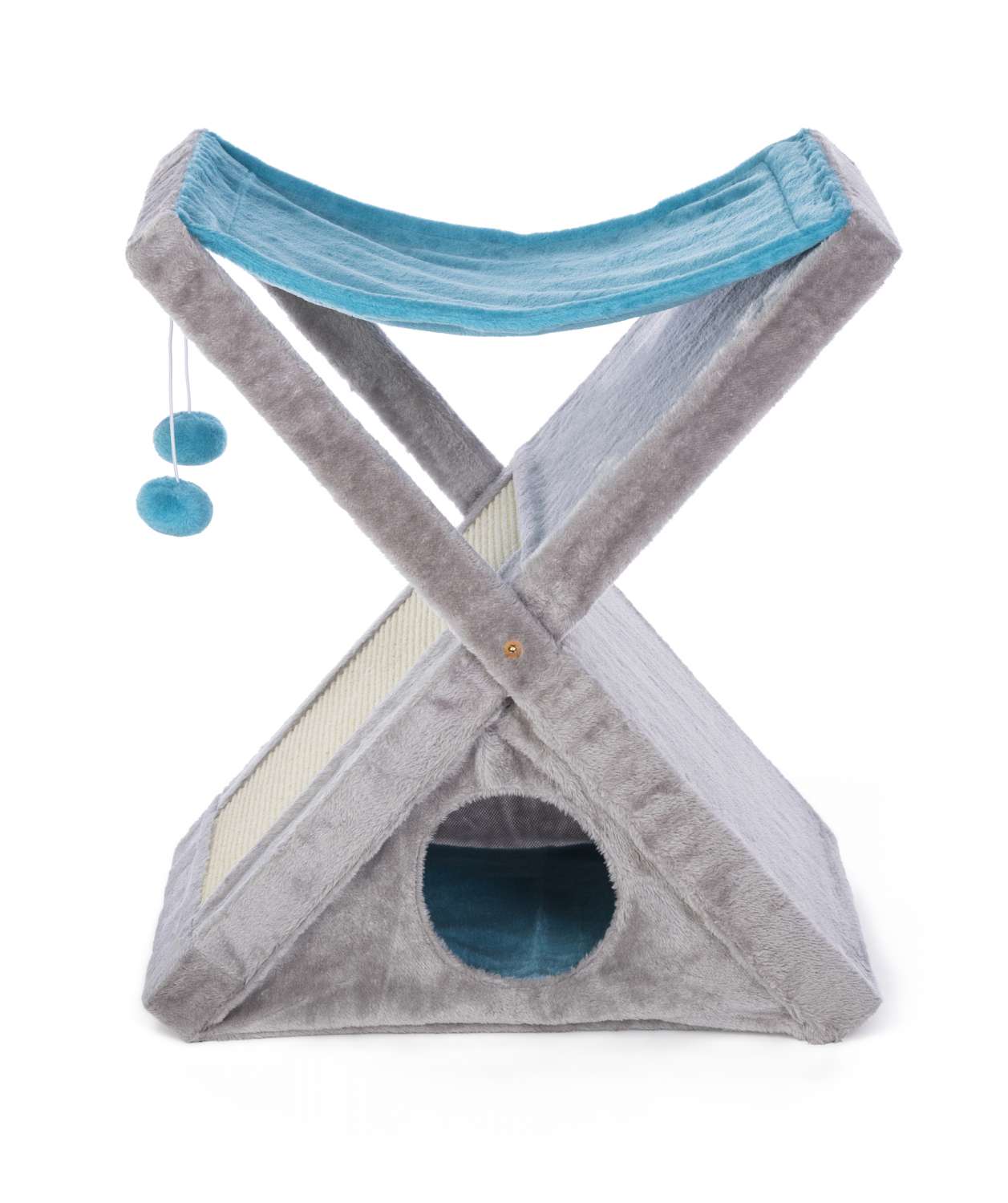 كيتي باور باوز خداشة للقطط مع بيت وكرات تفاعلية لون سماوي