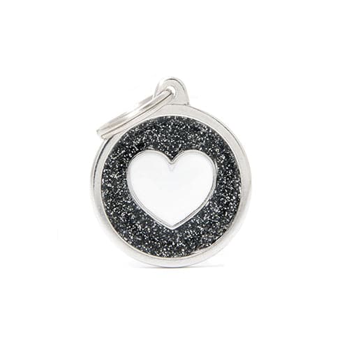 ماي فاميلي قلادة دائرية لون اسود لامع شكل قلب حجم كبير